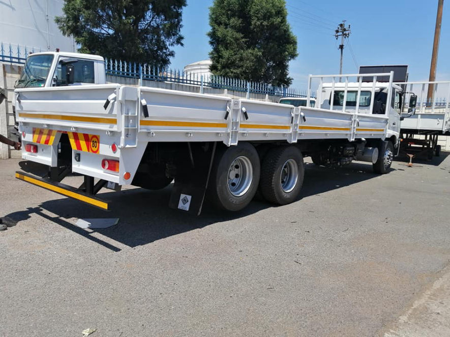 Cross members spaced 375mm apart. Mud flaps and under run bumper fitted as standard. All parts are primed before assembly, and complete body is also covered in 2 layers of EDGE Primer. Body will be spray painted with 2x coats of 2k white to matched to the Truck cab colour. All Bodies is available in various lengths to suit the application and payload. Vehicle Width will be determined by the client and legislation of the particular model. Vehicle Height of STD units will be 2,2M and 2,4m respectably.